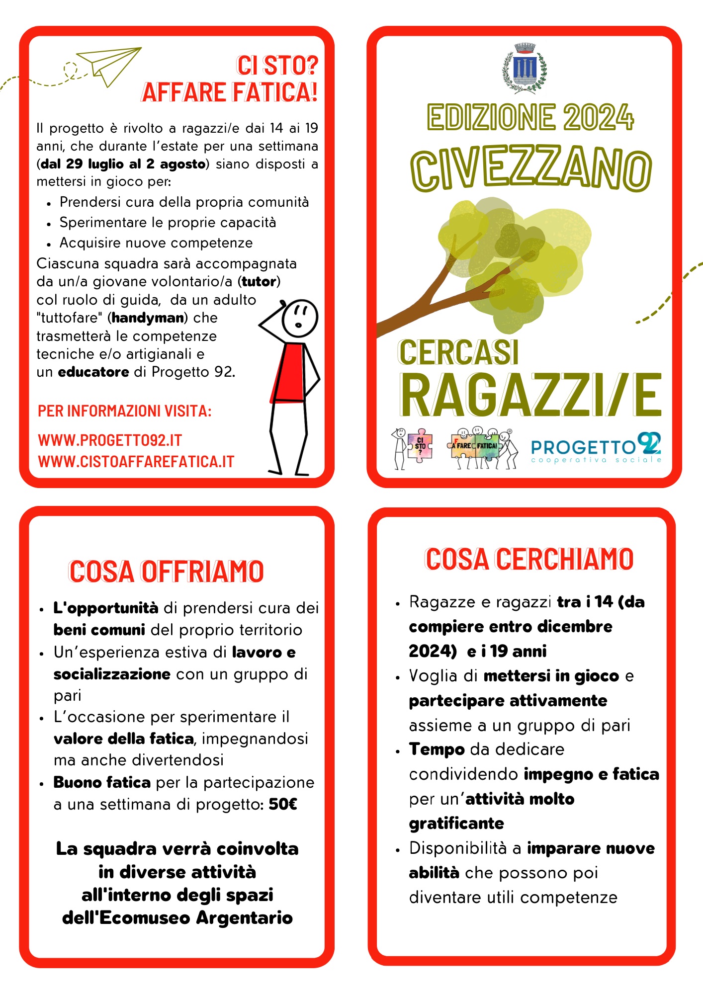 "Ci sto? Affare fatica!" al via il progetto estivo di lavoro per ragazze/i dai 14 ai 19 anni.