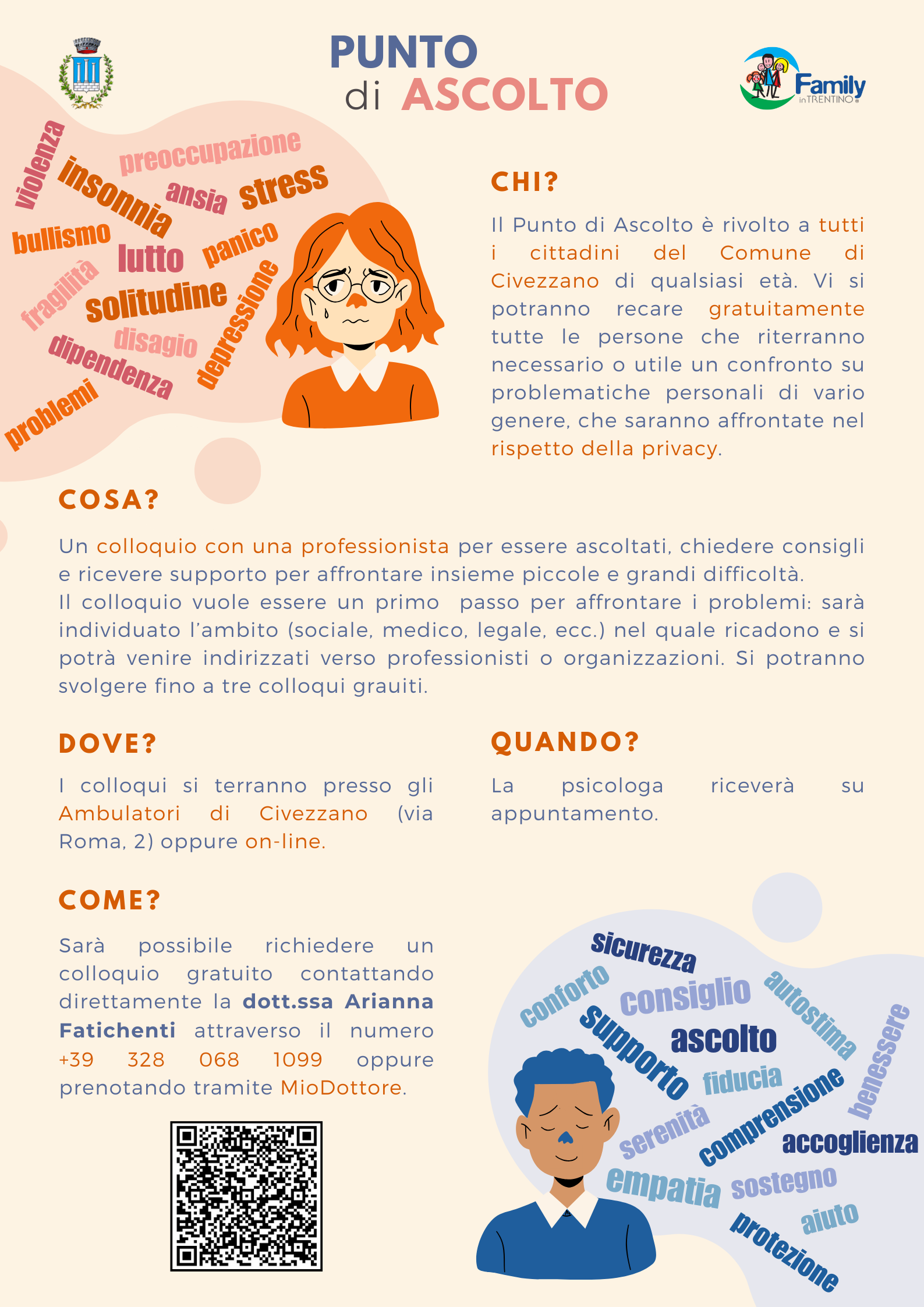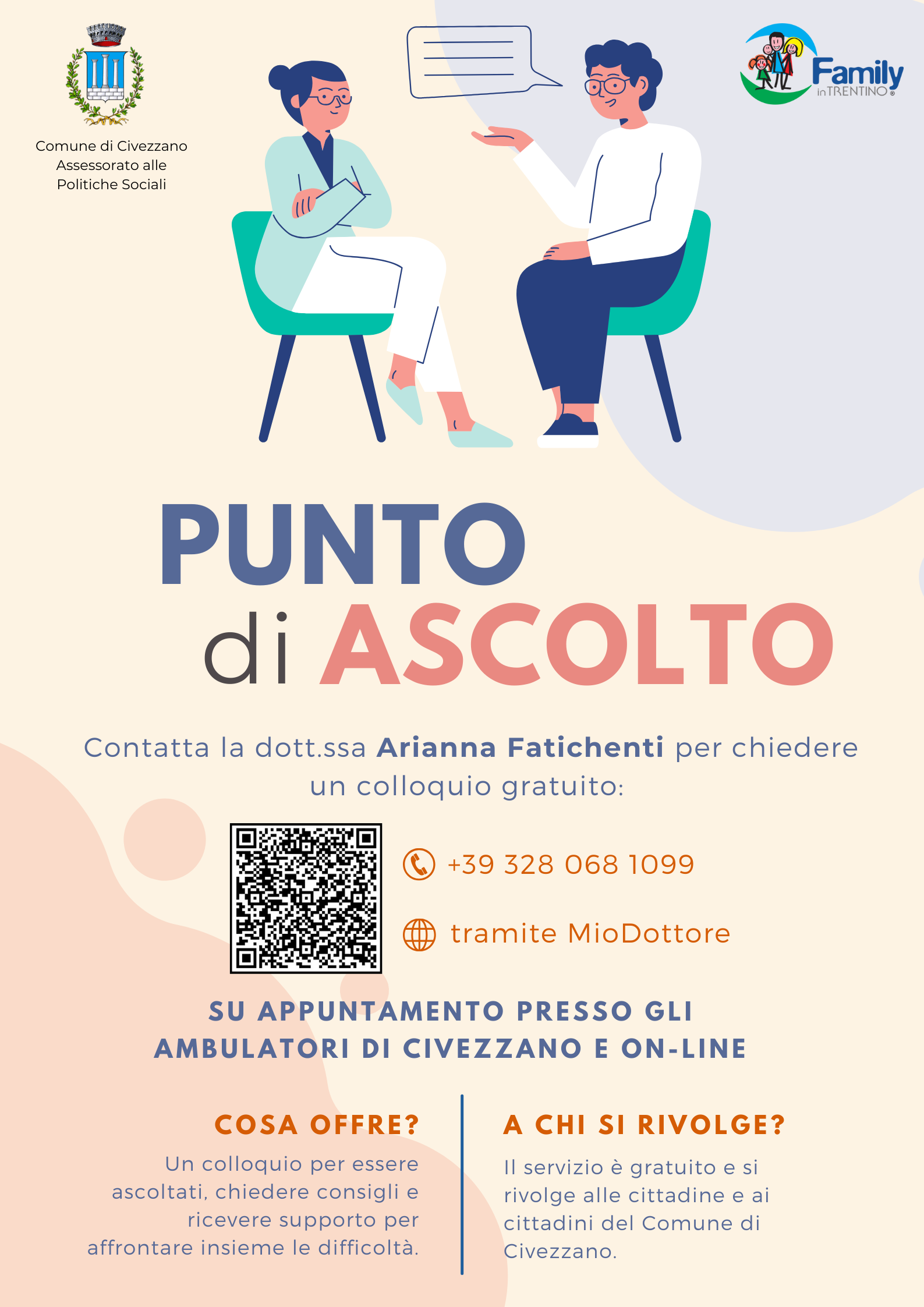 L’Amministrazione comunale ha istituito questo servizio per offrire uno spazio sicuro e accessibile a chi desidera confrontarsi su difficoltà personali, familiari o emotive.
