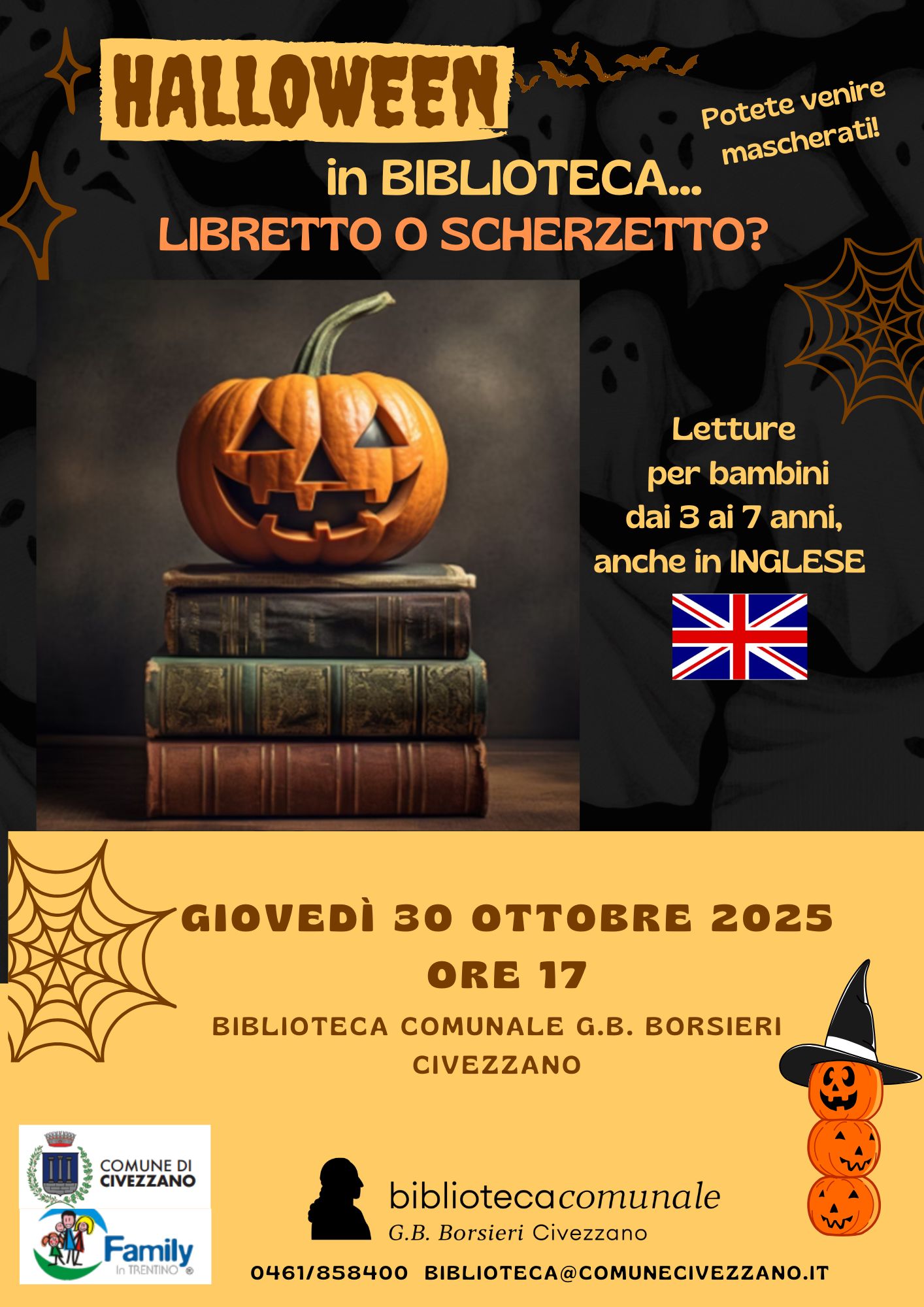 Cos'è Giovedì 30 ottobre 2025ore 17.00Biblioteca comunale G.B. Borsieri - CivezzanoSe lo desiderano, i bambini possono venire mascherati.