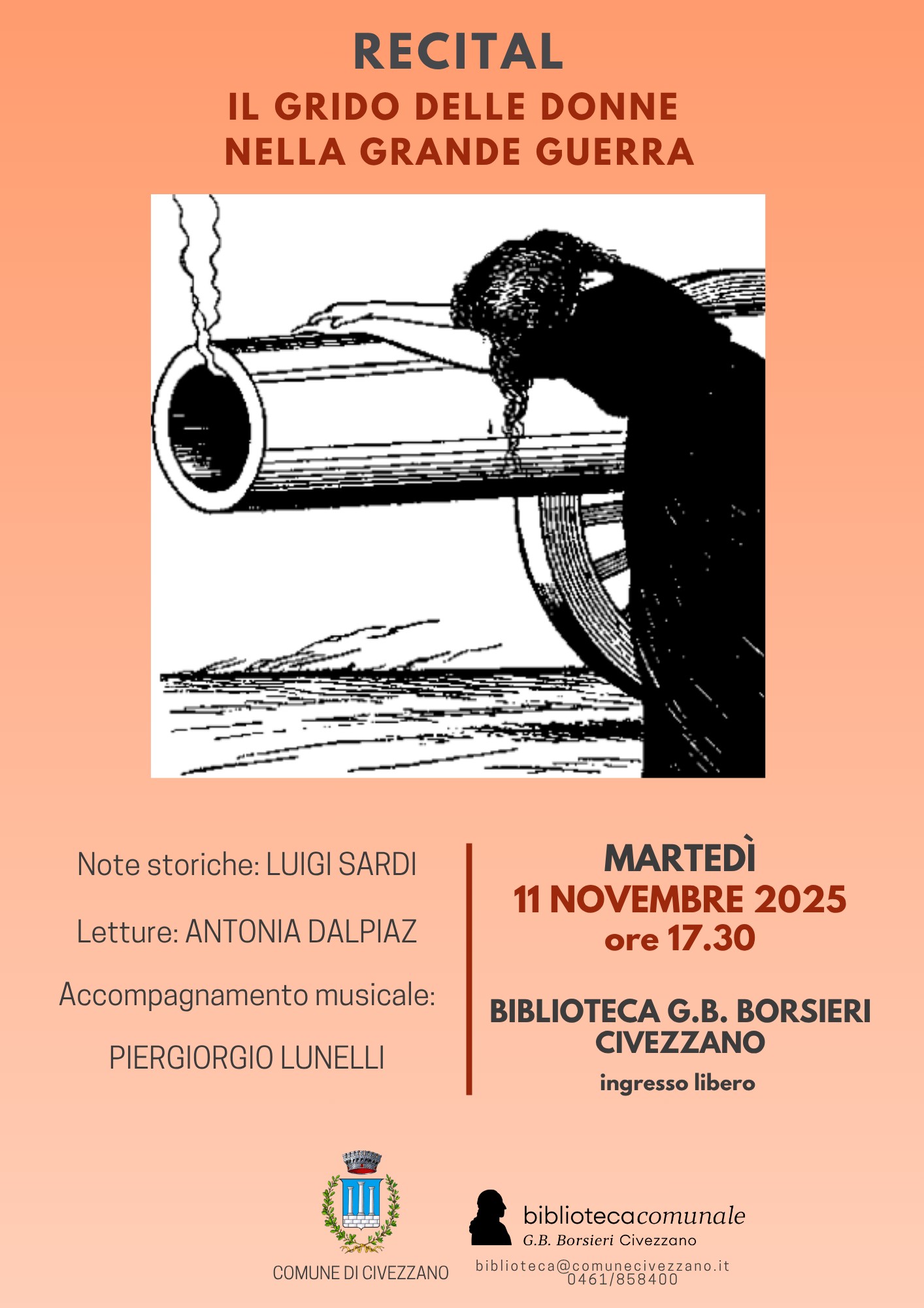 Il recital, che rievoca episodi significativi della storia locale e nazionale – come la protesta delle “popolane” di Trento del 1915 e le difficili condizioni di vita e di lavoro delle donne durante la guerra – si propone di valorizzare la memoria storica e di offrire un momento di riflessione sul ruolo femminile nella Prima Guerra Mondiale, mettendo in luce le fatiche, le sofferenze e il cammino verso l’emancipazione, nella prospettiva di una cultura di pace, solidarietà e parità di genere.