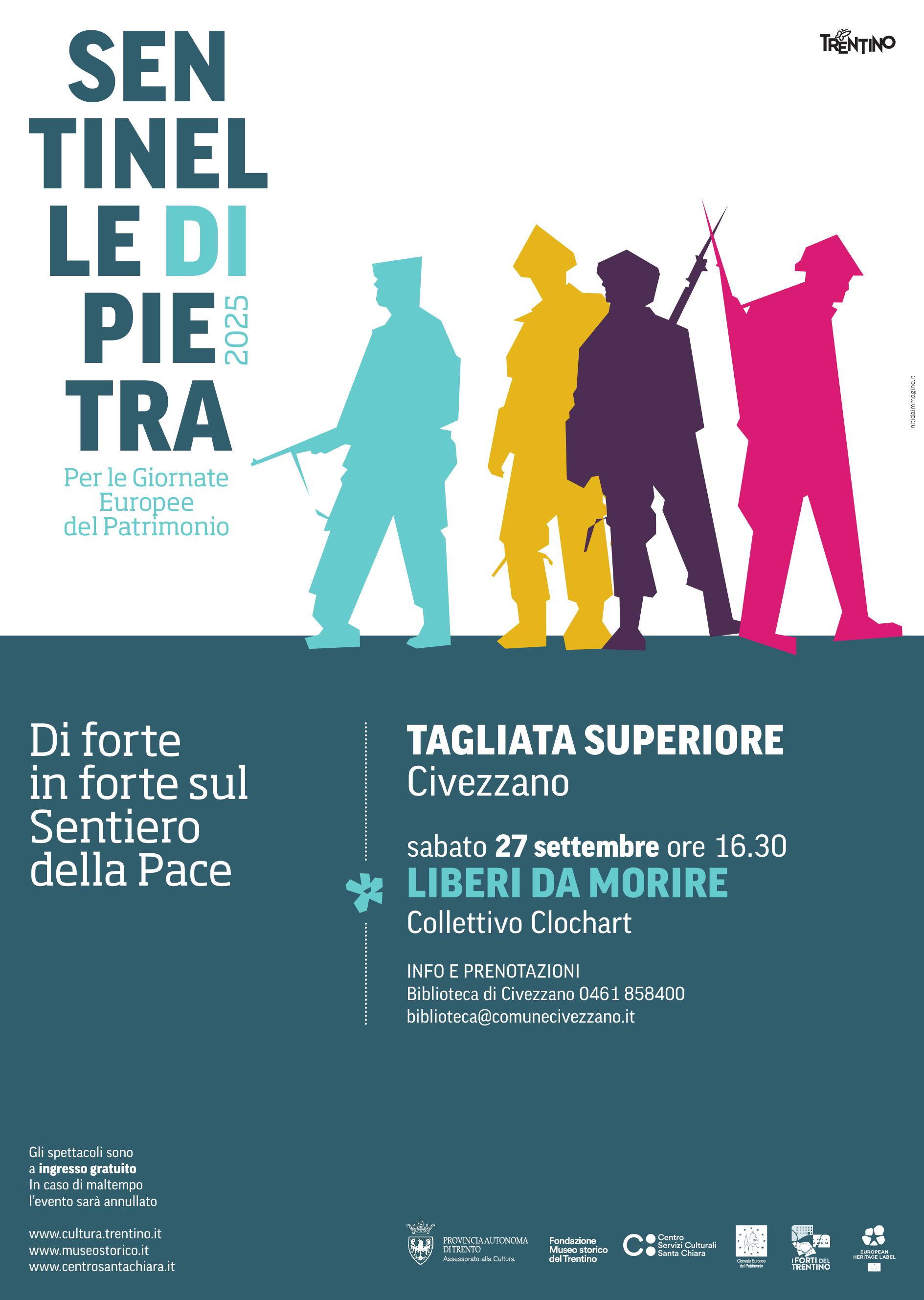 Torna la ricca proposta culturale trentina che animerà i forti con la rassegna Sentinelle Di Pietra, l’iniziativa promossa dall’Assessorato all’istruzione, cultura e sport, politiche per la famiglia, per i giovani e per le pari opportunità della Provincia autonoma di Trento – Servizio Attività e produzione culturale -, in collaborazione con la Fondazione Museo Storico del Trentino e il Centro Servizi Culturali S. Chiara di Trento. Un’occasione unica di scoprire o ri-scoprire la storia delle singole fortificazioni e dei luoghi teatro della Grande Guerra. Per partecipare agli eventi è gradita la prenotazione.